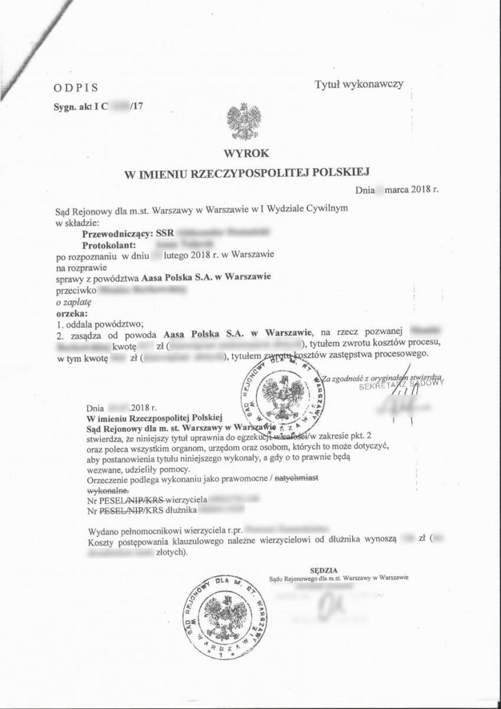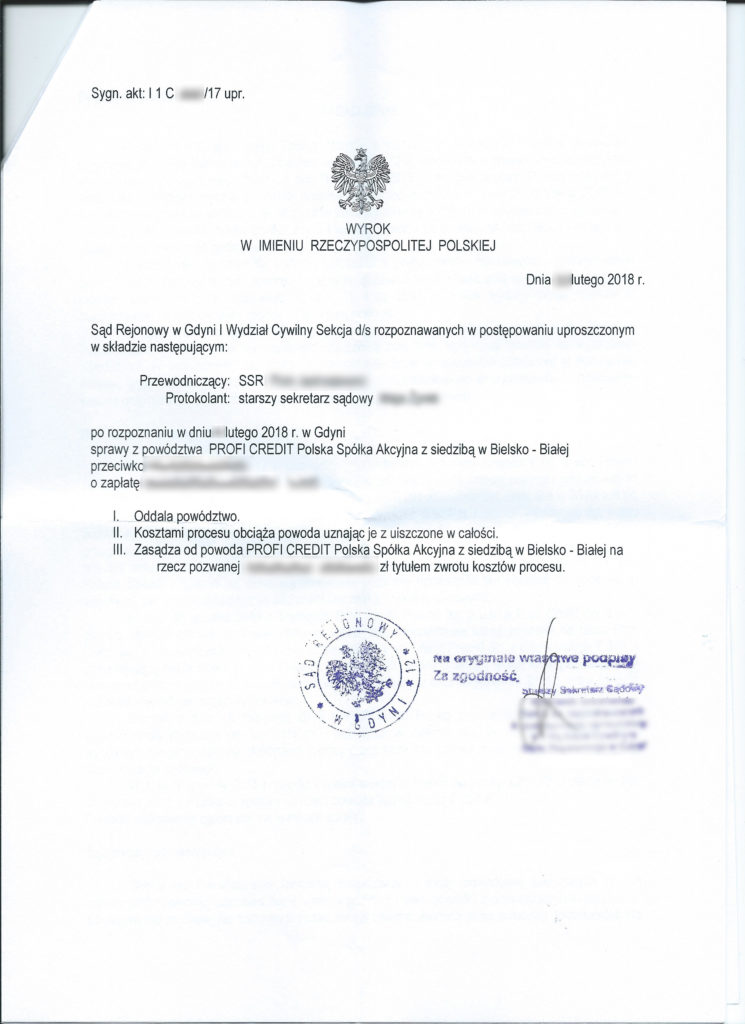 Nie, kancelaria oddłużeniowa nie powinna uczyć jak nie oddawać pieniędzy. Celem naszej kancelarii jest ochrona praw konsumentów do zgodnego z prawem procesu sądowego. Pewnie Pan zapyta co mam na myśli uczciwy proces sądowy. Dla przykładu można podać sprawę w której 5 sierpnia 2020 roku, Sąd Rejonowy w Lublinie wydał wyrok oddalający powództwo, czyli wygraliśmy ten proces, za pożyczkę w kwocie 3000 zł, a w umowie do spłaty nasz klient miał prawie 10000 zł. Dokonał spłaty kwoty prawie 7000 zł, co i tak przełożyło się, że pożyczkodawca próbował sądowo uzyskać wyrok nakazujący spłatę pozostałych 3000 zł i ponad 600 zł odsetek za opóźnienie oraz ponad 1000 zł kosztów procesu. Gdyby nie nasza pomoc, zapewne osoba pozwana musiałaby spłacić całą kwotę wskazaną w pozwie wraz z odsetkami.