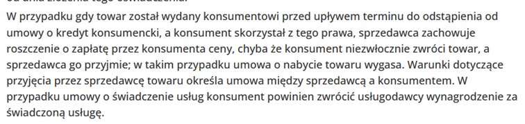 Jeśli jesteś czytelnikiem Antychwilówki to wiesz najpewniej, że w ustawie o kredycie konsumenckim funkcjonuje coś takiego jak sankcja kredytu darmowego. Sankcja kredytu darmowego polega na tym, że konsument, po złożeniu pisemnego oświadczenia, uchyla się od obowiązku zapłaty wszystkich kosztów wynikających z zawartej umowy o kredyt konsumencki i spłaca jedynie pożyczony kapitał kredytu w równych ratach – zgodnych z pierwotnych harmonogramem. Jak więc widzisz są pewne podobieństwa pomiędzy sankcją kredytu darmowego (art. 45 ust. 1 ustawy o kredycie konsumenckim) a odstąpieniem od umowy o kredyt po myśli art. 53 ust. 2 ustawy o kredycie konsumenckim.
